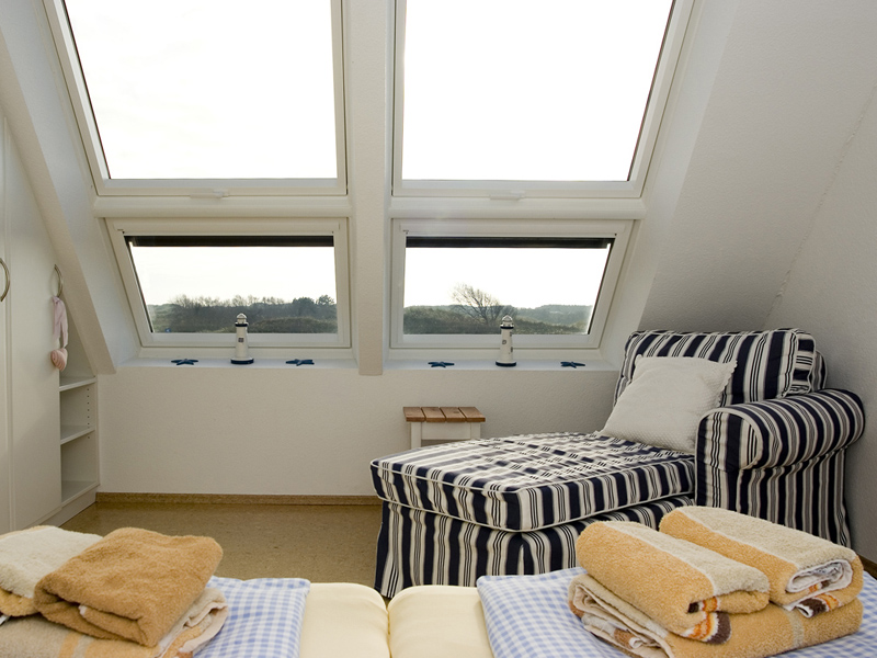 Einige Impressionen aus einem der drei Schlafzimmer der Ferienwohnung "Borkumtraum", direkt am Borkumer Südstrand. Aus diesem wunderschönen Raum blicken sie aus dem Bett heraus weit über die Dünen.